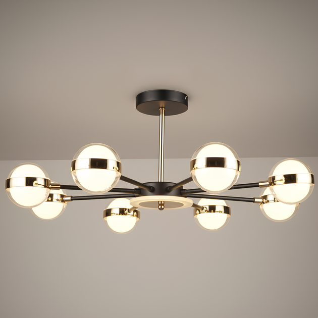 Світлодіодна стельова люстра 119W Sirius B N4543/8 BK+FGD із вісьмома акриловими плафонами 3000–6500K чорно-золота