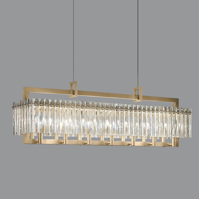 Підвісний світильник BENNA LONG від фабрики DEPRIMO - це елегантний та стильний освітлювальний пристрій, який чудово підійде для створення затишної та яскравої атмосфери у вітальні, готелі, шоу-румі, студії, холі чи лаунж зоні. Світильник має модерн та арт-деко стиль, який надає йому вишуканості та витонченості. Він виконаний з якісних матеріалів – кришталю та металу, що забезпечує