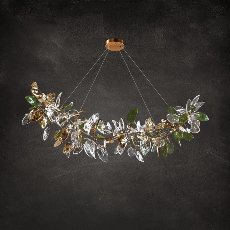 Підвісна люстра ELLING LUX H180 Green від бренду DEPRIMO – це чудове рішення для тих, хто цінує сучасний стиль та флористичні мотиви у дизайні інтер'єру. Виготовлена в Китаї із високоякісних матеріалів, вона привертає увагу поєднанням елегантної латунної арматури та плафонів із прозорого зеленого скла. Стильний виріб має ширину 1000 мм і висоту 1800 мм, завдяки чому він надасть вашому приміщенню
