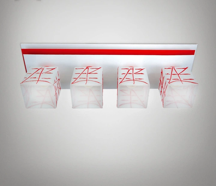 Люстра стельова металева біло-червона на 4 лампочки на кухню, дитячу, зал 10144