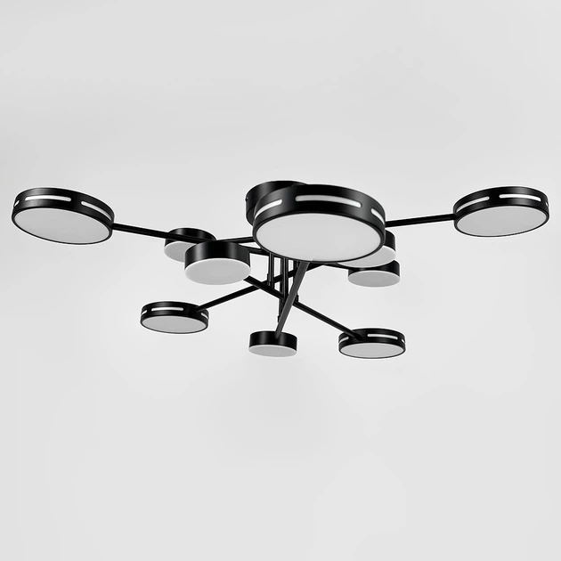 Чорна стельова люстра на 5+5 світлових кругів 90 см