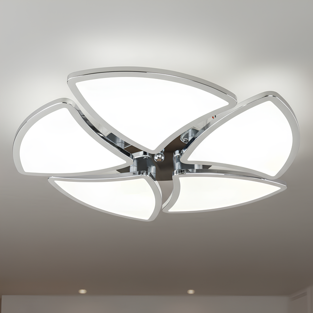 Світлодіодна стельова люстра 120W Sirius 2901-5 з білими акриловими розсіювачами 3000–6500K хромовий корпус