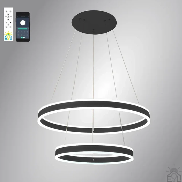 Світлодіодна люстра Esllse STELLA 2R 160 Вт чорна підвісна з пультом та додатком для телефону 220-IP20