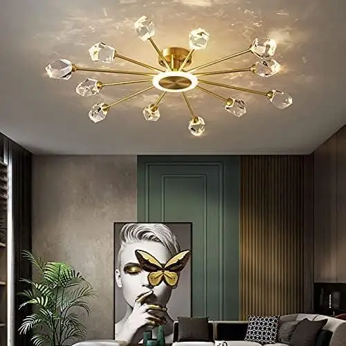 Світлодіодна люстра Сапфір 8810А Золотиста 12 акрилових плафонів для спальні та вітальні стельовий світильник (VIL-O33P)