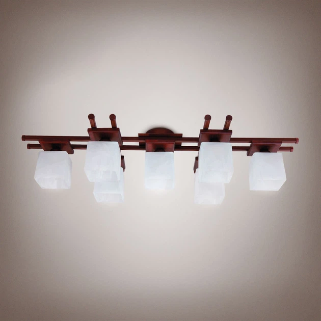 Велика стельова люстра у кольорі венге на 7 скляних плафонів 14677