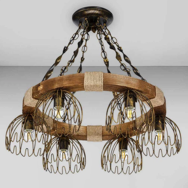 Люстра підвісна дерев'яна Light House DL-18571/6 колір бронза + коричневий