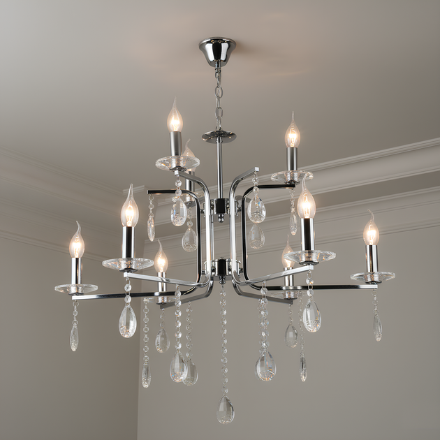 Класична підвісна люстра Valeso K2310/9 на 9 ламп E14 у хромовому кольорі з кришталевими підвісами
