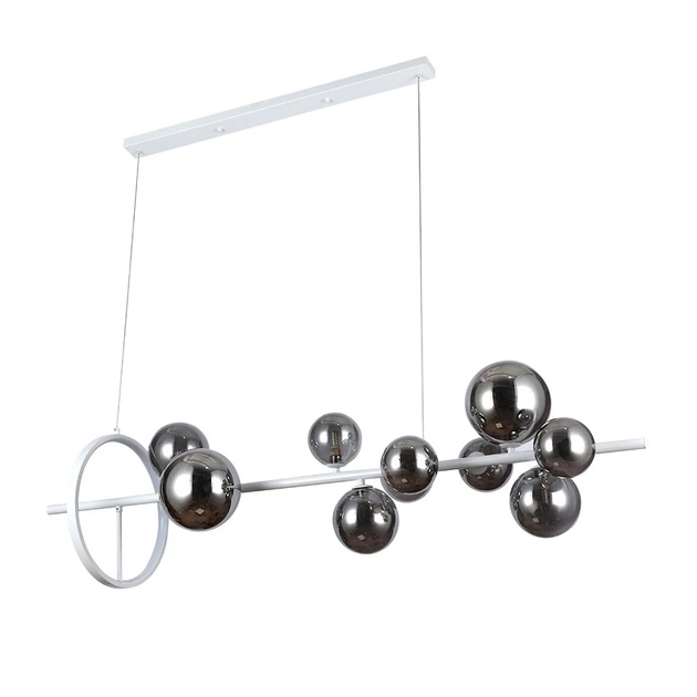 Підвісна люстра з LED-кільцем Levistella на 10 димчастих плафонів під лампу G9 біла IP20 918LP267-10 WH+BK
