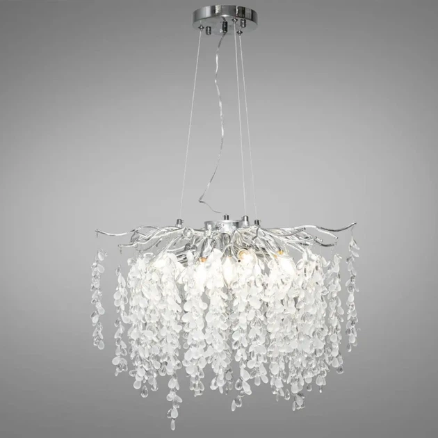 Підвісна кришталева люстра Diasha в сучасному стилі під вісім ламп Е14 кольору хром IP20