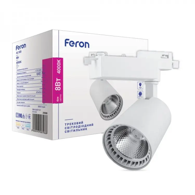 Світлодіодний трековий світильник Feron AL100, 8W 4000K білий (29508)