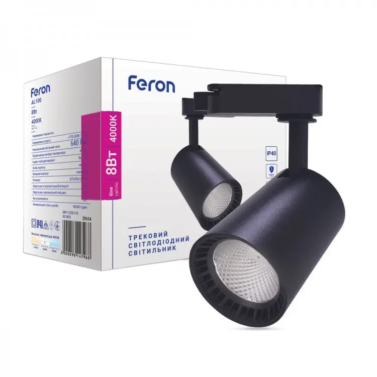 Світлодіодний трековий світильник Feron AL100, 8W 4000K чорний (29614)