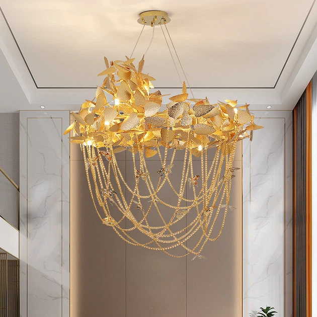 Люстра стельова підвісна на 16 лампочок MD6010-L1600-gd-k Золото 85-200х60х160 см.