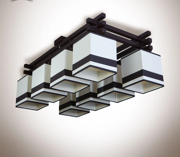 Велика стельова дерев'яна люстра з абажурами для великої кімнати 19002-1