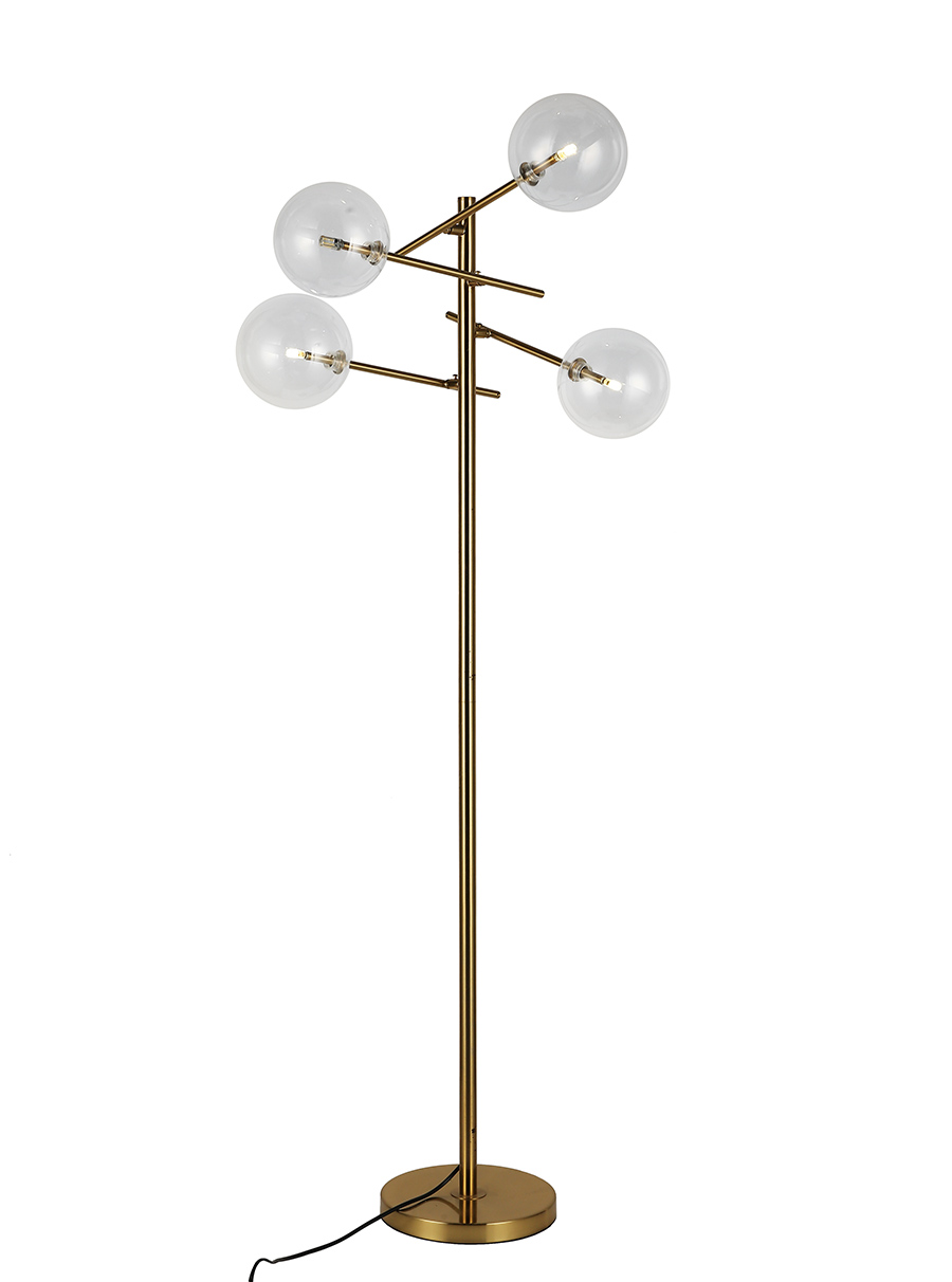 Матеріал - метал+склоКолір - бронзовийМатеріал абажура - склоРозміри: 400x260x1650 ммТип: підлоговий світильникДжерело світла - 4 G4 лампиМаксимальна потужність - 40WКомплектація лампою - немаєДіаметр плафону 150 мм