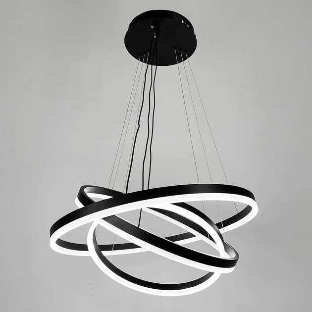 Люстра підвісна світлодіодна Light House LNF-17538/107W у вигляді трьох кілець 60+50+40 см чорна