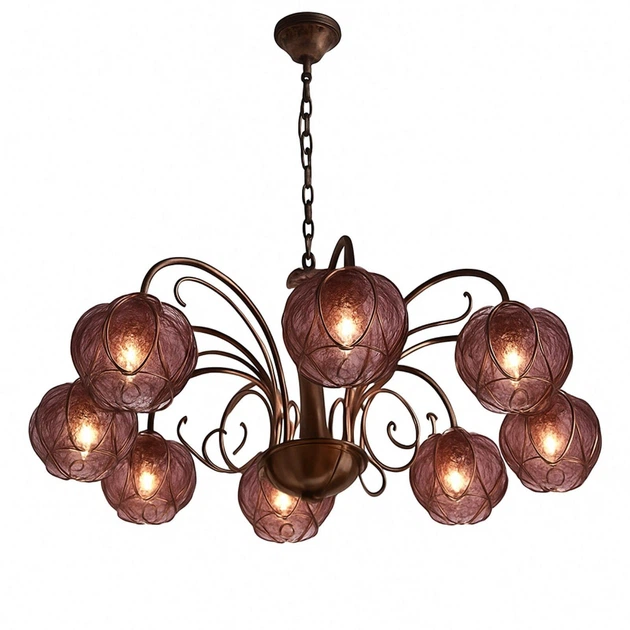 Підвісна люстра на шість ламп з винними (фіолетовими) плафонами