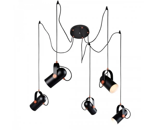 Люстра 5-ти лампова чорний на тросах, підвіс, точковий світильник 80005