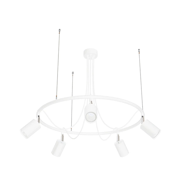 Люстра 5-ти лампова біла на тросах, підвіс, точковий світильник 40755