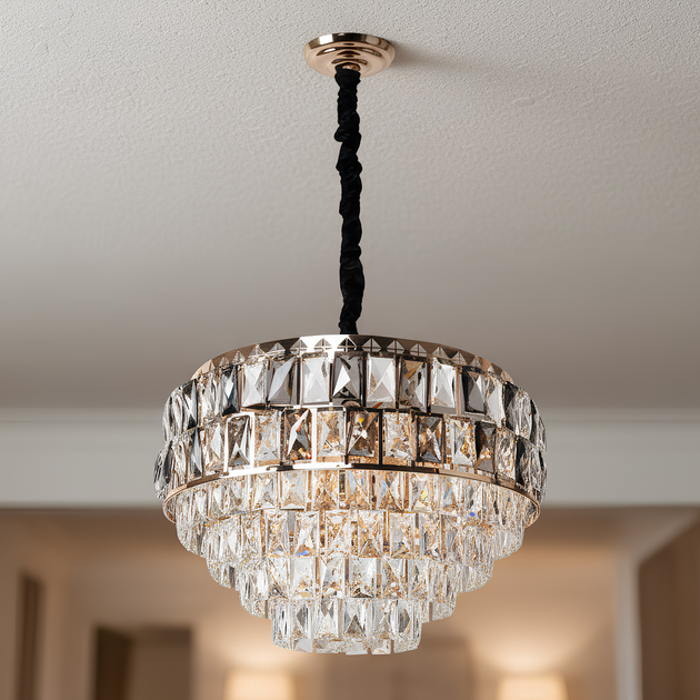 Кришталева підвісна люстра Sirius 19306-15 багатоярусна на 15 ламп E14 у золотистому виконанні