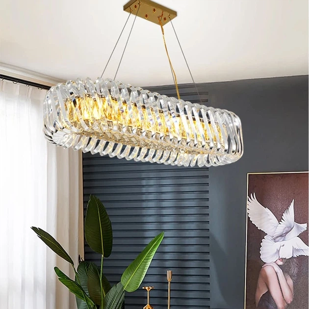 Унікальна підвісна люстра подовжена 100х23х32 см | Line F | Арт. D3008-L1000 GD+CL