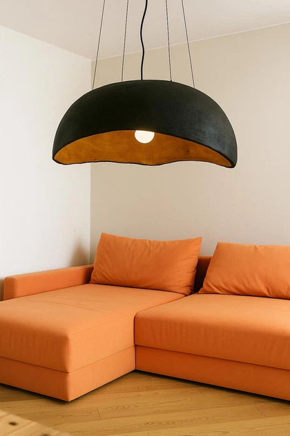 Підвісна люстра з дуба ручної роботи, довжина 70 см, ширина 51 см, висота 40 см, чорна (1545)