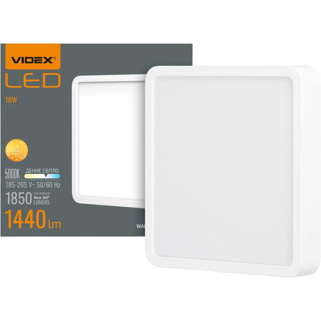 Cвітильник накладний Videx LED 18W 5000K квадратний (VL-DLSS-185)