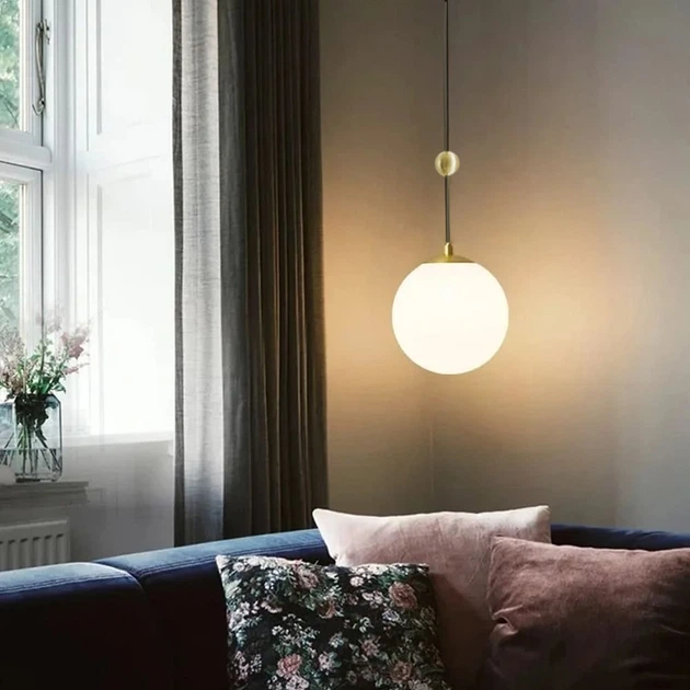 Світильник підвісний з білим плафоном та латунним корпусом 20 см | Line F | Арт. AA461-200