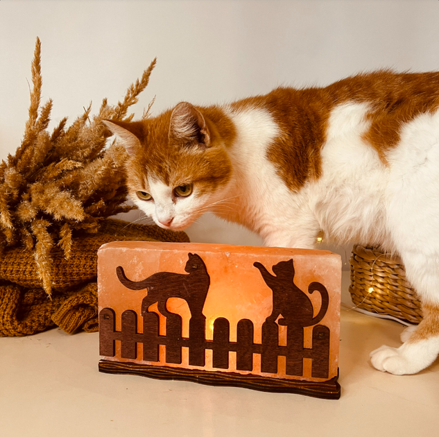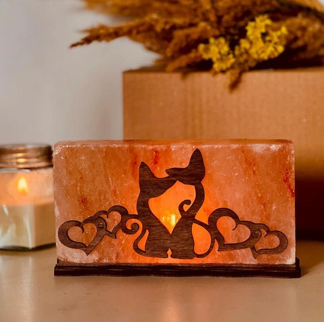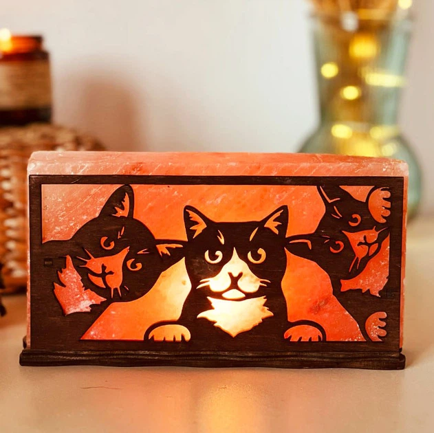 Світильник із каменю гімалайської солі з котиками Настільні соляні лампи Гімалайська соляна лампа (0306-а3)