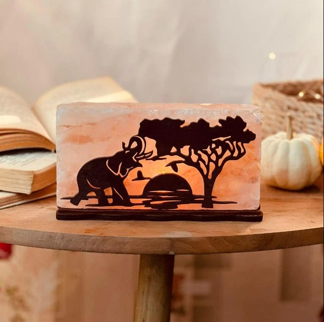 Світильник із каменю гімалайської солі зі слоном Настільні соляні лампи Гімалайська соляна лампа (0304-а3)