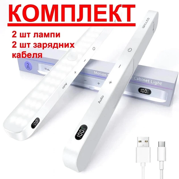 Світильник лінійний меблевий портативний бездротовий на акумуляторі магнітний з датчиком руху та регулюванням яскравості ніч