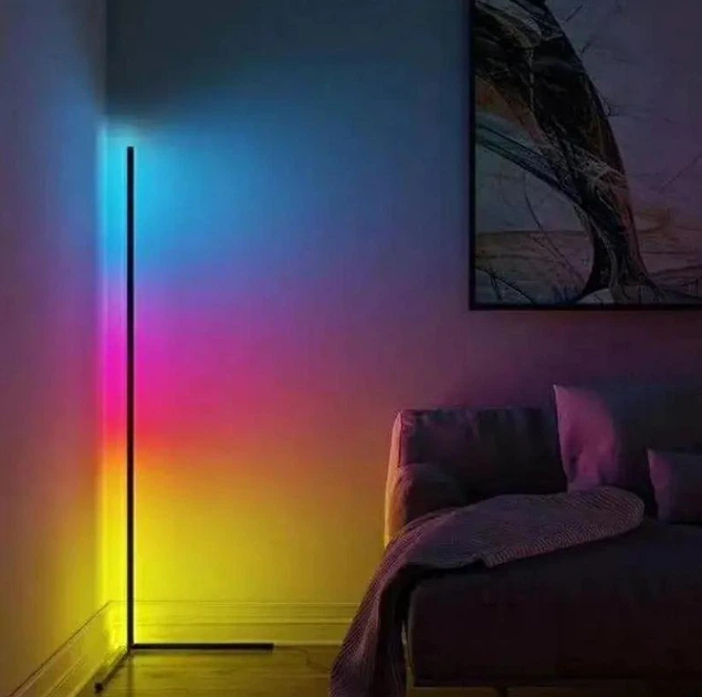 Торшер кутовий підлоговий RGB LED 1.4 м, світлодіодна лампа з пультом дистанційного керування, кольорова підсвітка для кімна