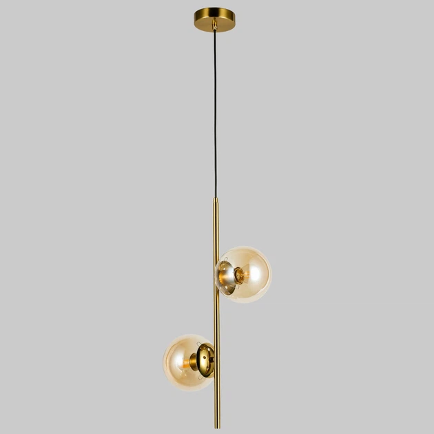 Підвісний бронзовий світильник на 2 лампи з 13см плафонами (52-1015-2 BRZ+BR)