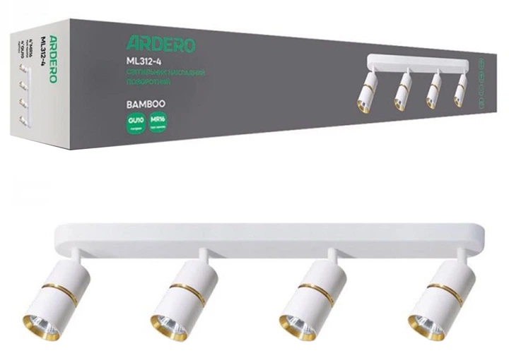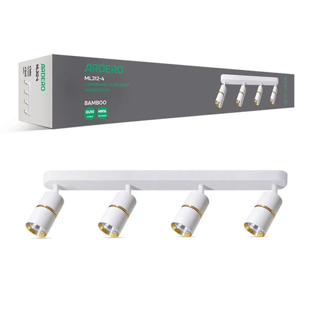 Накладний поворотний світильник Ardero ML312-4 BAMBOO GU10 IP20 білий+золото (80235)
