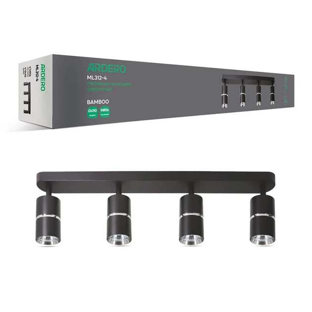 Світильник стельовий накладний поворотний Ardero ML312-4 під лампу MR16/GU10 чорний+хром (4820273272388)