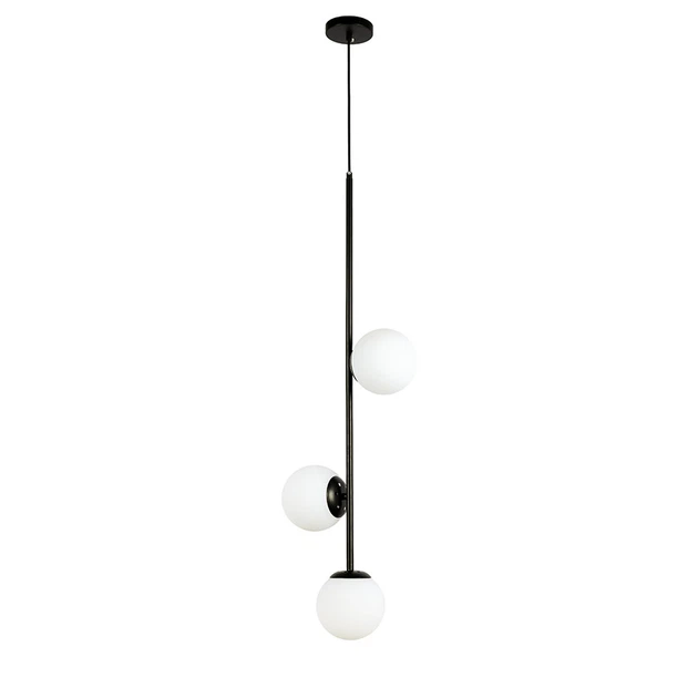Підвісний світильник молекула чорний із трьома білими скляними плафонами Levistella 7521015-3 BK+WH