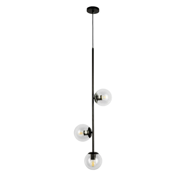 Підвісний світильник молекула чорний із трьома прозорими скляними плафонами Levistella 7521015-3 BK+CL
