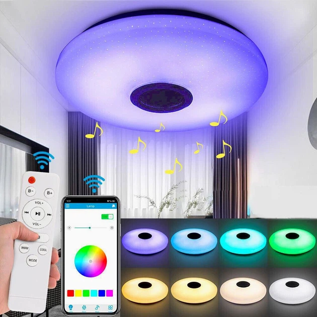 Стельовий RGB світильник 60Вт 38см з Bluetooth колонкою та пультом 220240В білий пластик