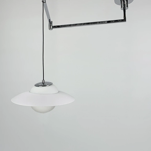 Регулюючий підвісний світильник в хромовому корпусі з білим обводком