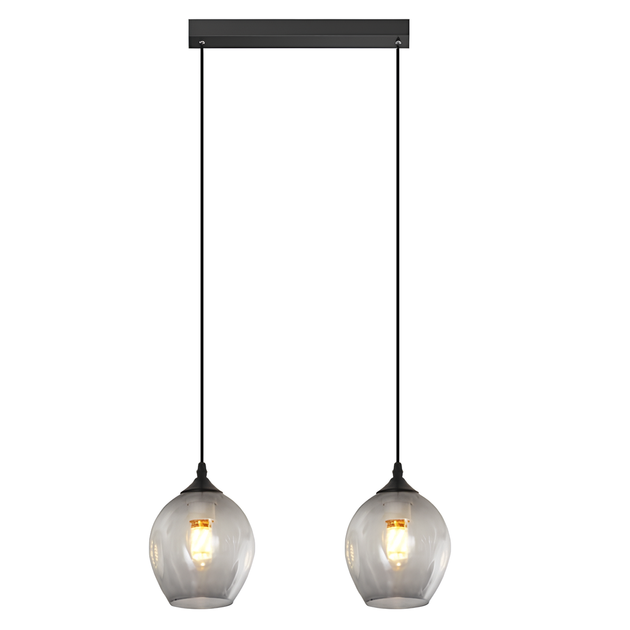 Підвісний світильник Sirius GLD-8181-2 8C BL із двома сірими плафонами під лампи E27 на чорній металевій планці