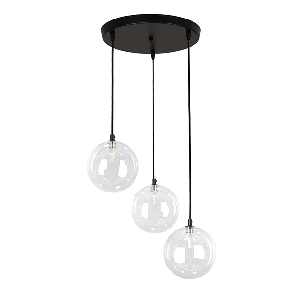 Світильник підвісний Levistella 761P150F-3 BK+CL 500 металевий з 3 скляними плафонами Чорний (134-16-LVS4429)