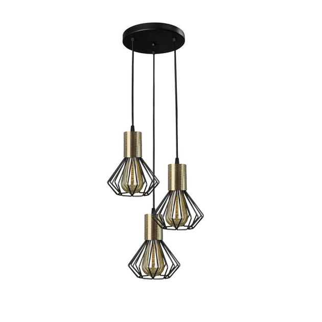 Світильник підвісний лофт 100lamp Diadem на три плафони E27 чорний+бронза (NL 2215-3R BK+BN)