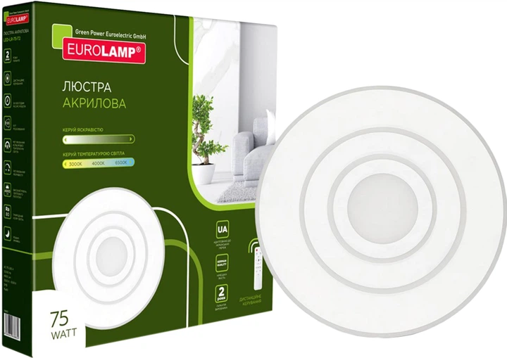Світильник стельовий з пультом управління ПУ Eurolamp LED T2 75W 3000-6500K Білий