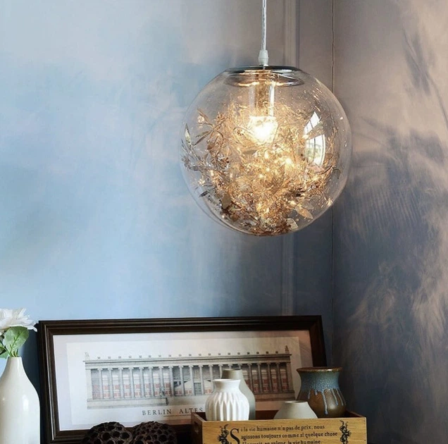 Підвісний світильник із прозорим плафоном кулею із флористичними мотивами 30 см | Line F | Арт. AT51-300