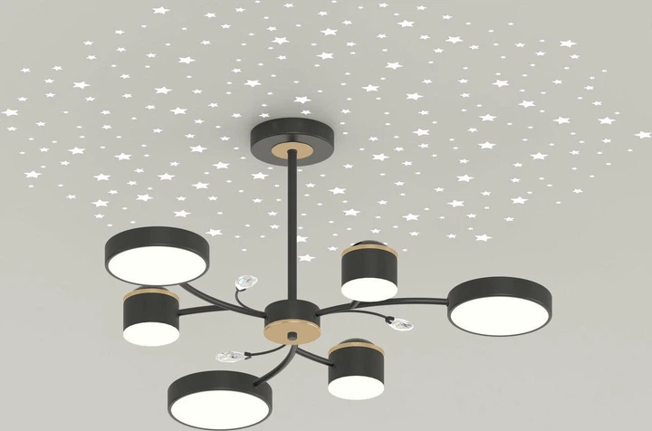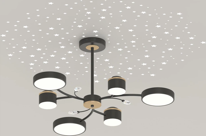 Люстра стельова світлодіодна VALESO DK6587/4 з пультом, LED 82W, димер, Чорний+Дерево