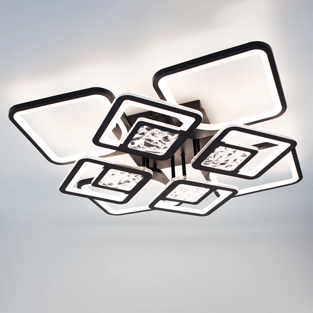 Світлодіодна люстра Esllse, що керується, з пультом TETRA TWIST ICE 8S 165W 595x595x110мм чорна