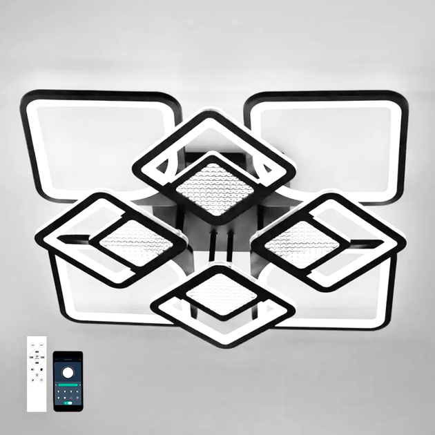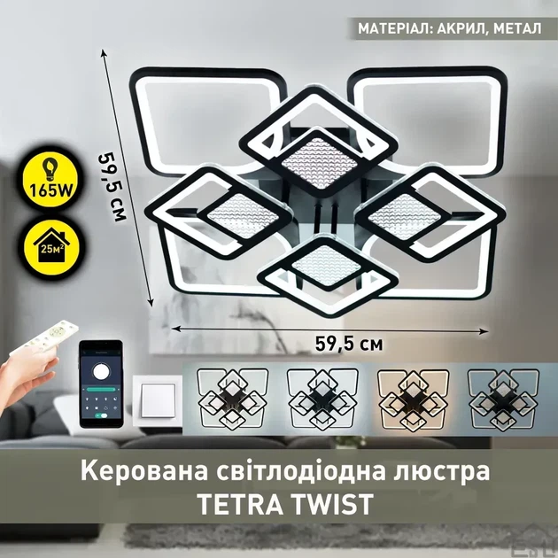 Смарт люстра TETRA TWIST 165W 8S чорна Esllse 595x595x110мм світлодіодна з пультом і додатком для смартфону