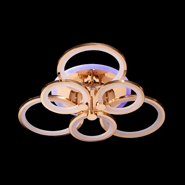 Люстра світлодіодна золоті круги на з пультом та різнокольоровим підсвічуванням для залу Svet SL-5332/3+3B FG RGB