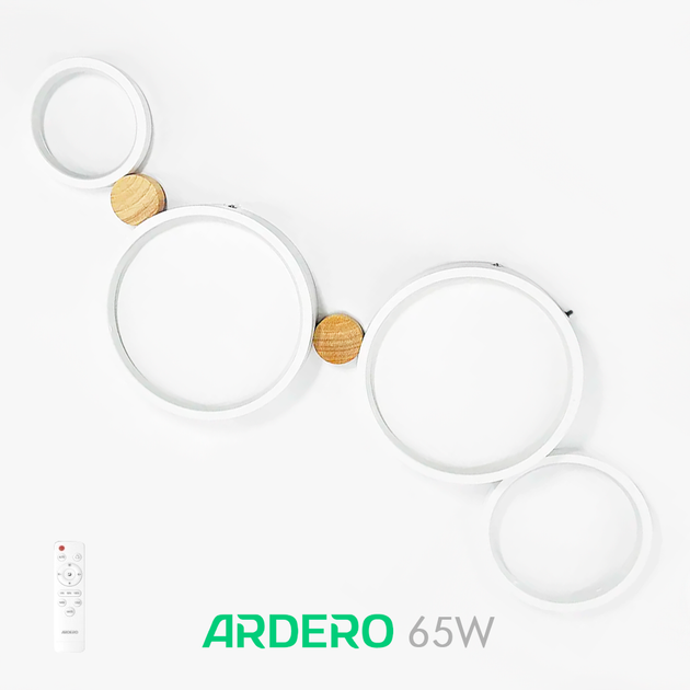 Люстра AL6194-1ARD SCANDY 65Вт біла з деревом Ardero 3000-6500К 4550Lm керована світлодіодна з пультом ДУ 750х210мм