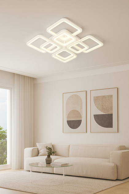 Люстра світлодіодна білі квадрати з кольоровим підсвічуванням та з пультом керування Svet SL-5331/4+4 WT RGB DIMMER