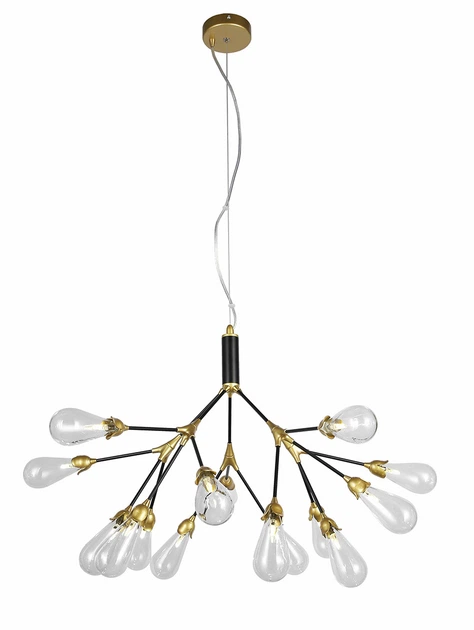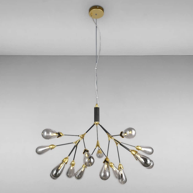 Підвісна люстра Levistella із затемненими плафонами під 15 ламп G4 золота IP20 918LP268-15 GD+BK